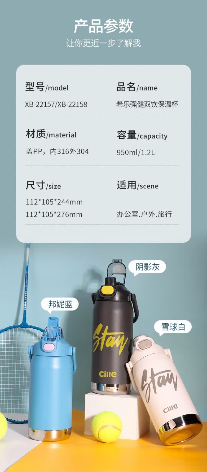 商品名称:希乐 强健双饮保温杯 XB-22158 1.2L