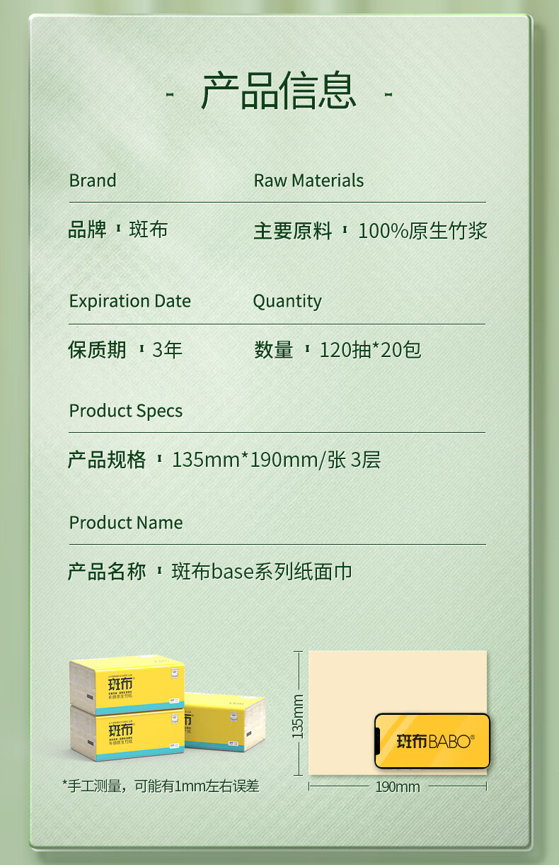 商品名称:斑布 BASE系列抽纸 DBCR120E20 120抽*20包