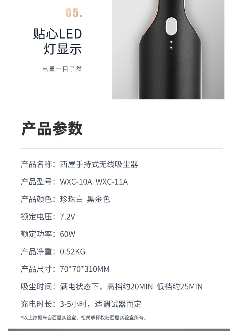 商品名称:西屋 手持吸尘器 WXC-10A/11A