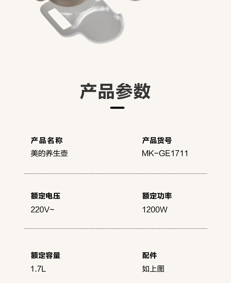 商品名称:美的 养生壶 GE1711