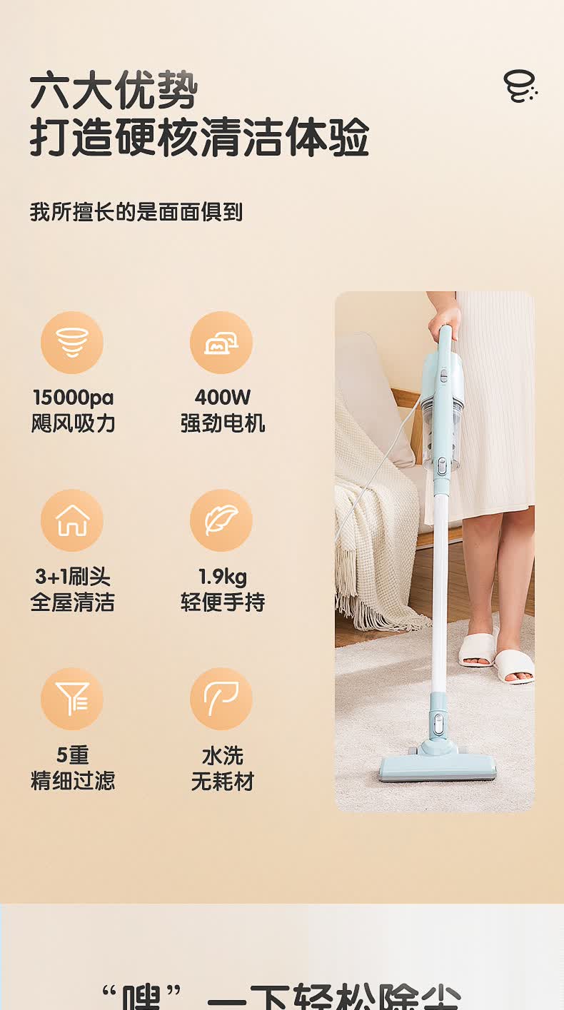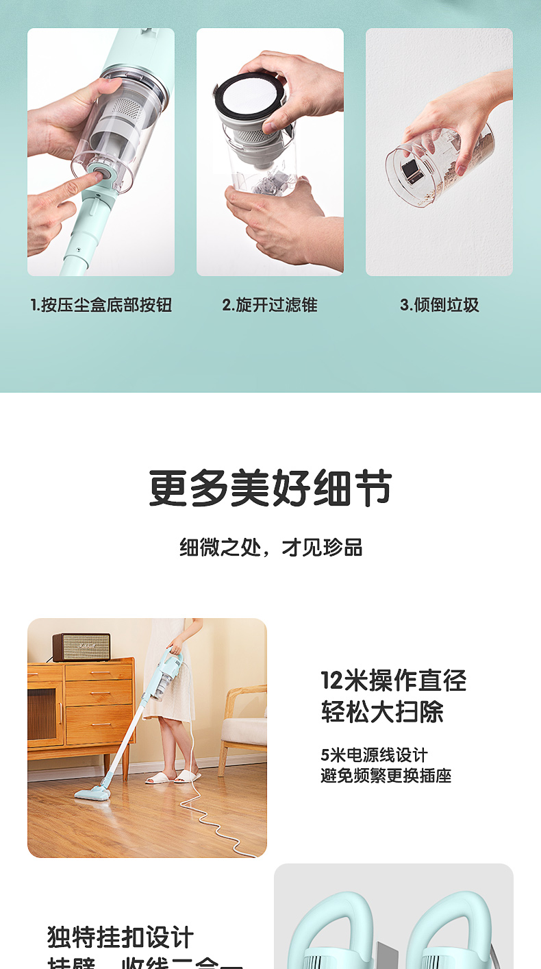 特色功能 :毛发防缠绕,一键倒尘