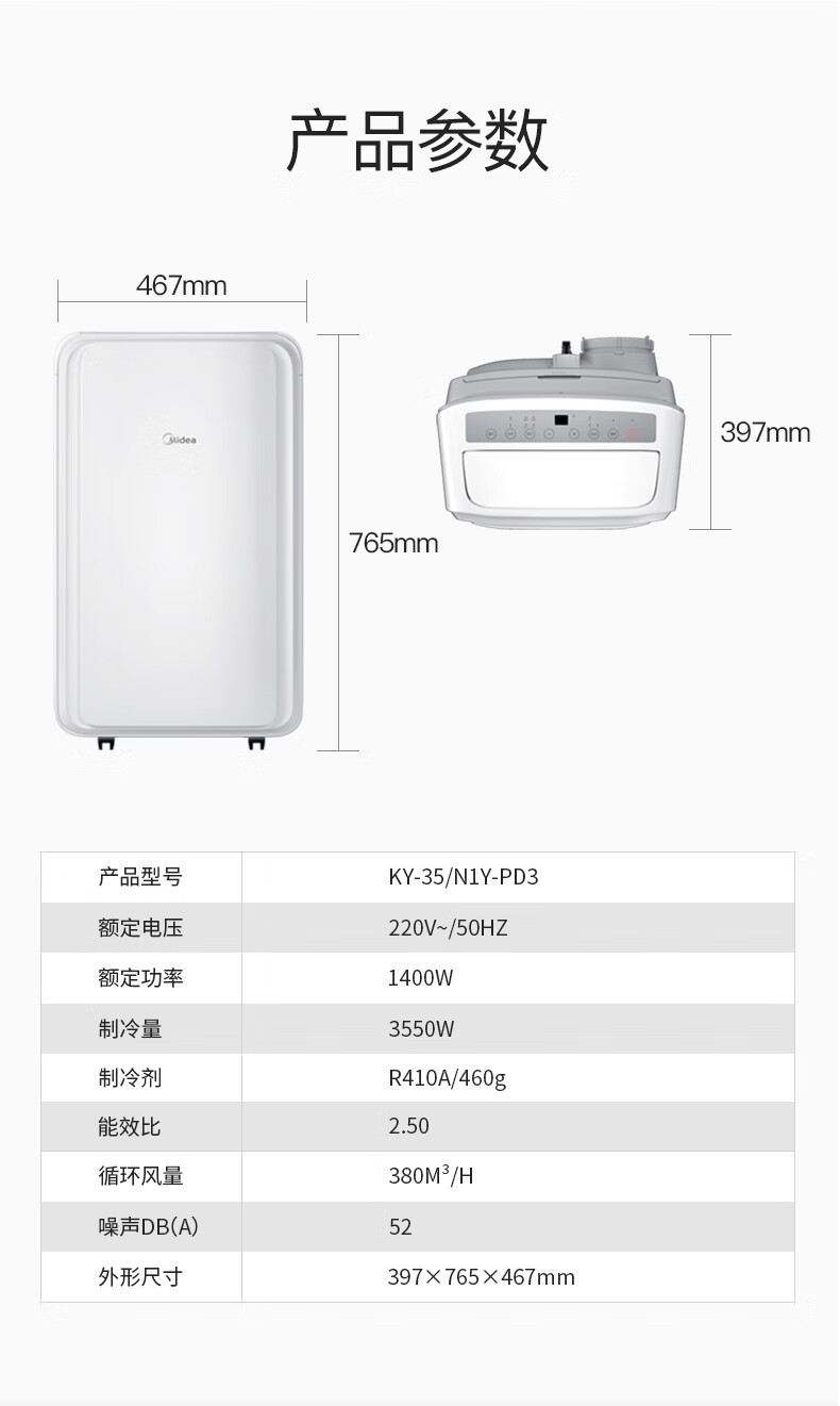商品名称:美的 移动空调 KY-35/N1Y-PD3