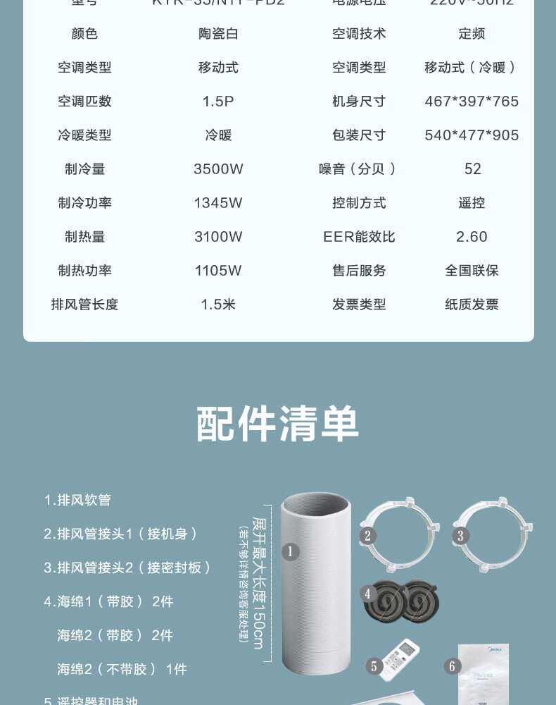 商品名称:美的 移动空调 KYR-35/N1Y-PD2