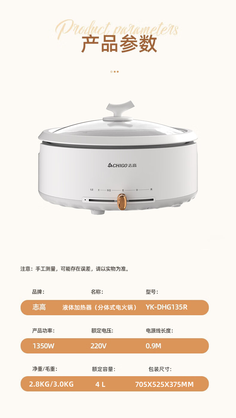 商品名称:志高 电火锅 YK-DHG135R