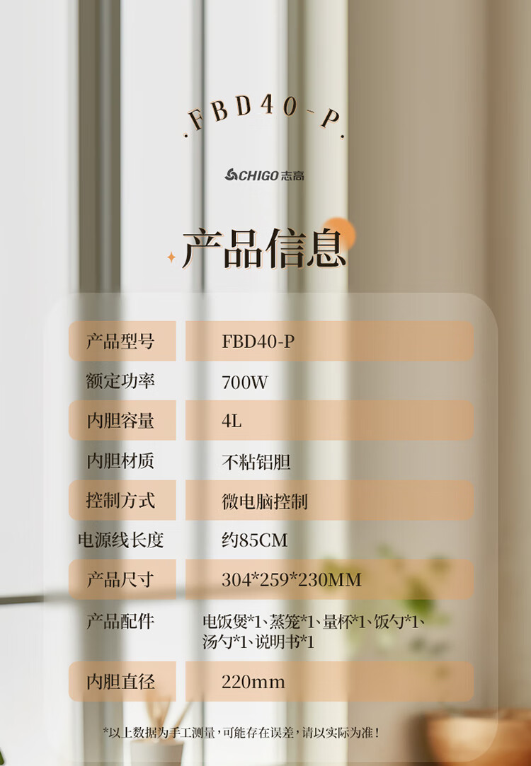 商品名称:志高 电饭煲 FBD40-P/方形