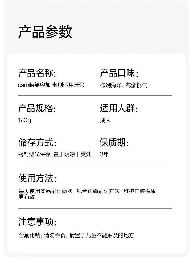 商品名称:usmile笑容加 声波伴侣牙膏170g