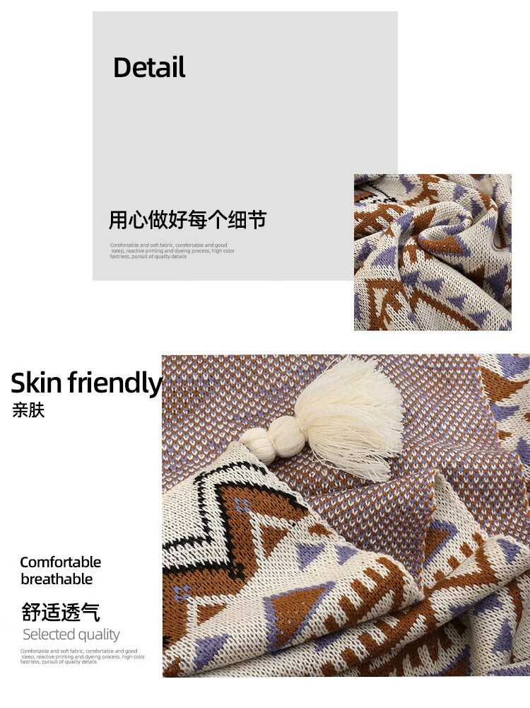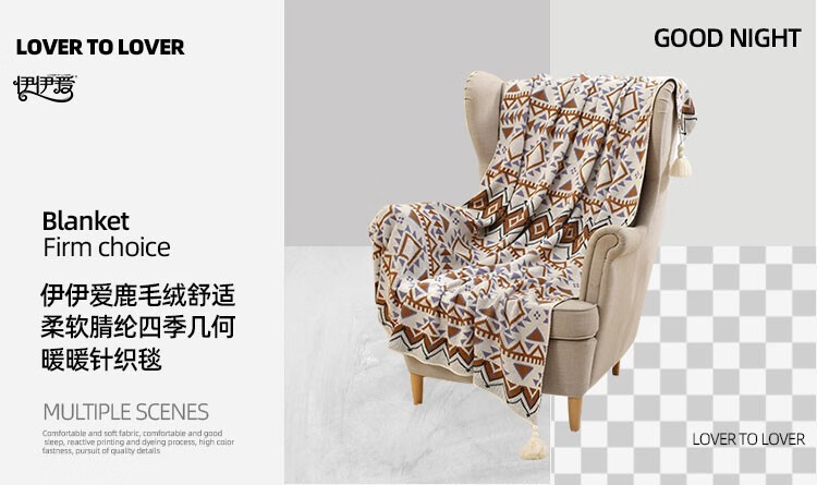 商品名称:伊伊爱 鹿毛绒腈纶四季几何暖暖针织毯130*180cm TZ0TK02300171