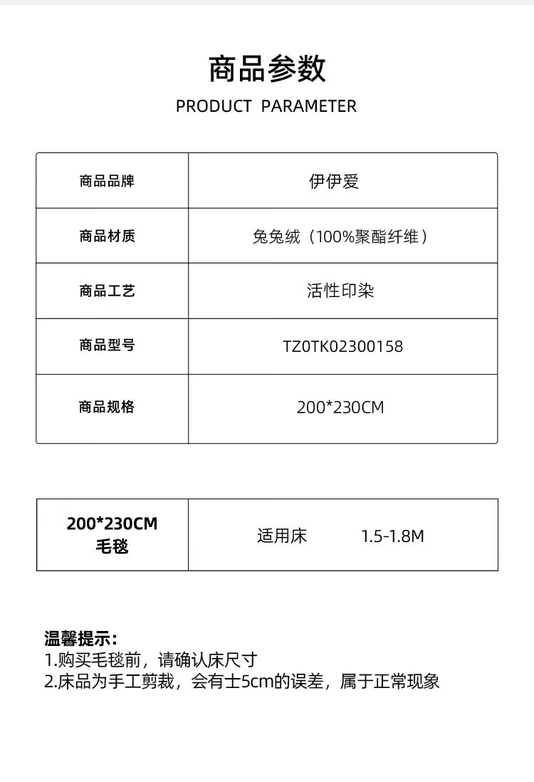 商品名称:伊伊爱 玉兔绒毛毯150*200cm TZ0TK02300155