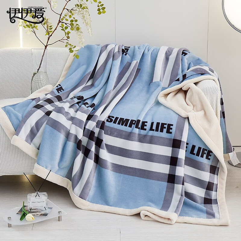 伊伊爱 欧棉绒双面加厚绒条格毛毯150*200cm TZ0TK02300167
