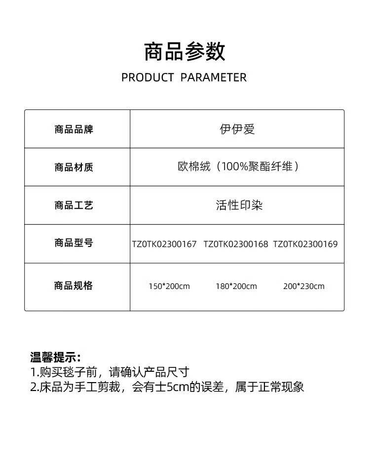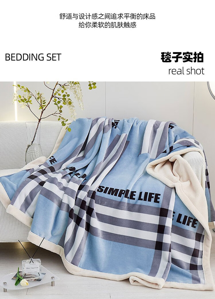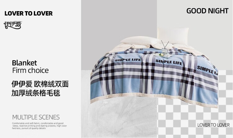 商品名称:伊伊爱 欧棉绒双面加厚绒条格毛毯200*230cm TZ0TK02300169