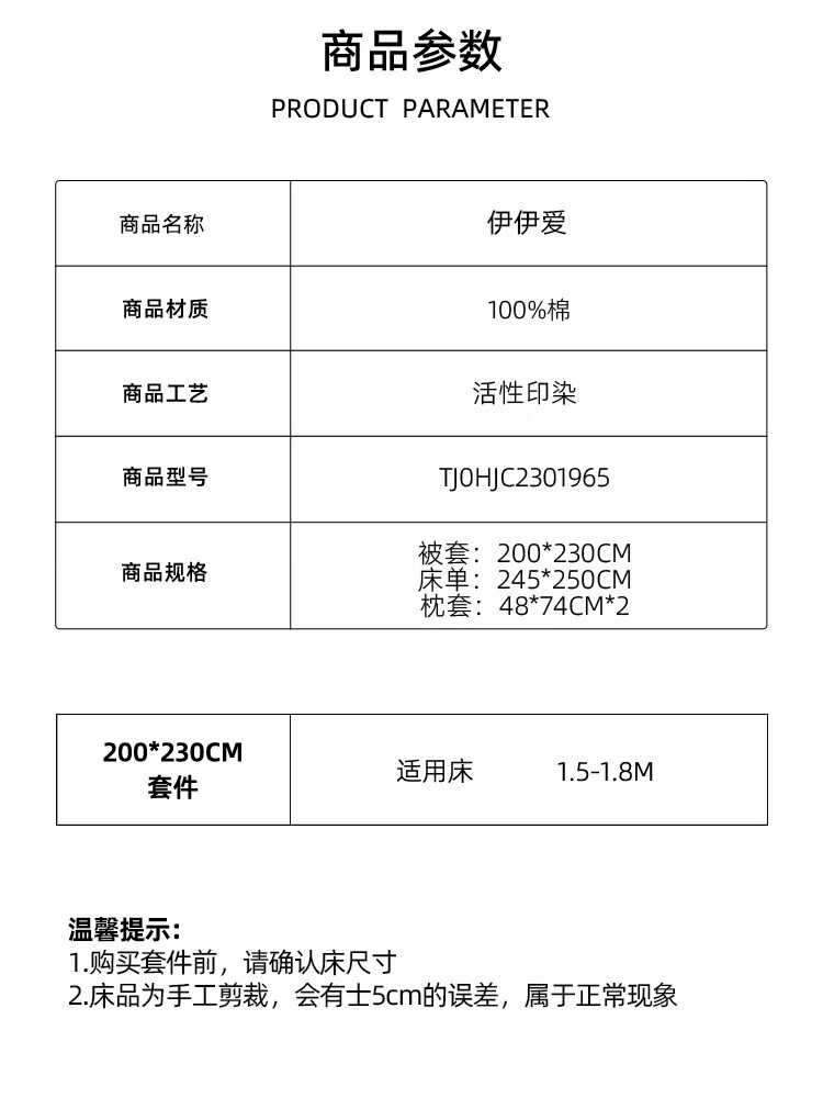 被套尺寸 :200*230cm