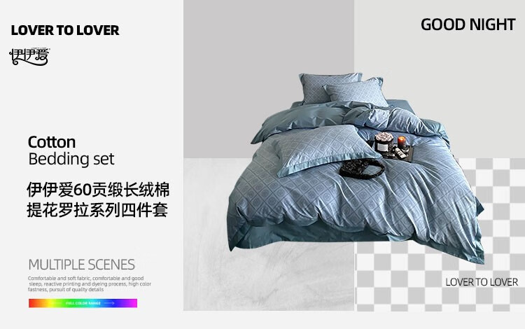 伊伊爱 60s贡缎长绒棉提花罗拉系列四件套200*230cm TJ0KY02302036