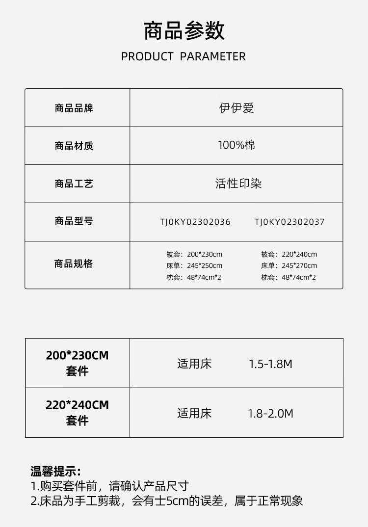 被套尺寸 :200*230cm