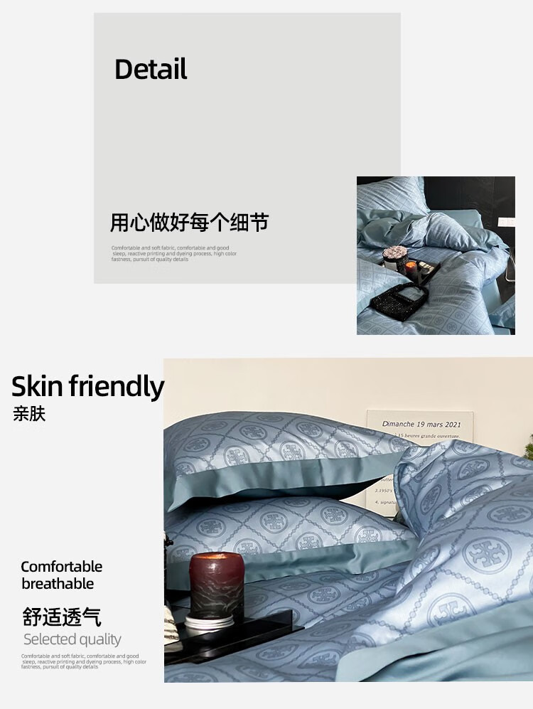 伊伊爱 新款50S莱赛尔棉御芙锻轻磨毛四件套200*230cm TJ0MB02302049