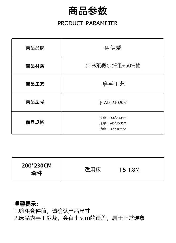 商品名称:伊伊爱 莱赛尔棉加厚磨毛四件套 200*230cm