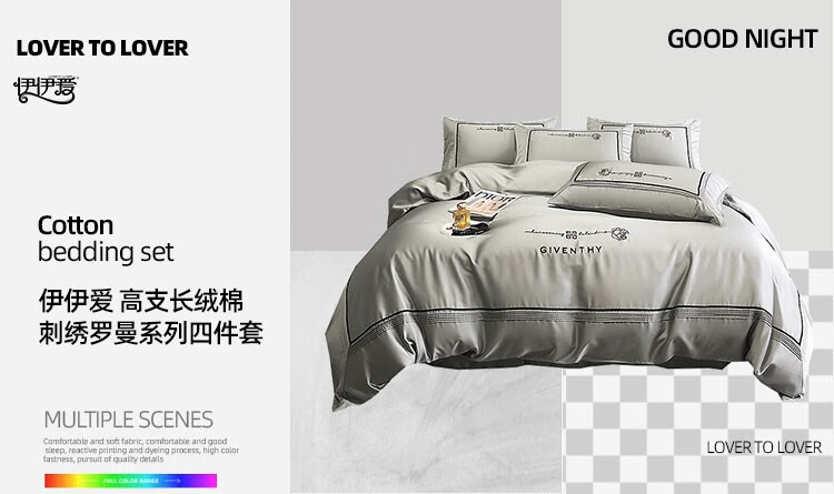 伊伊爱 高支长绒棉刺绣罗曼系列四件套200*230cm TJ0KL02302089
