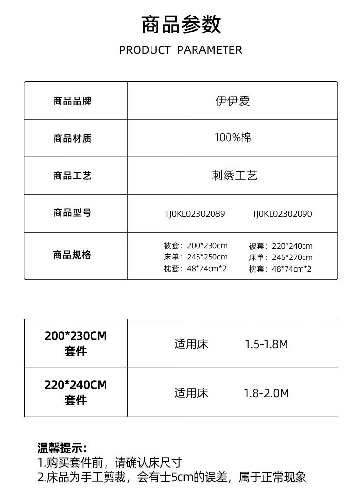商品名称:伊伊爱 高支长绒棉刺绣罗曼系列四件套200*230cm TJ0KL02302089