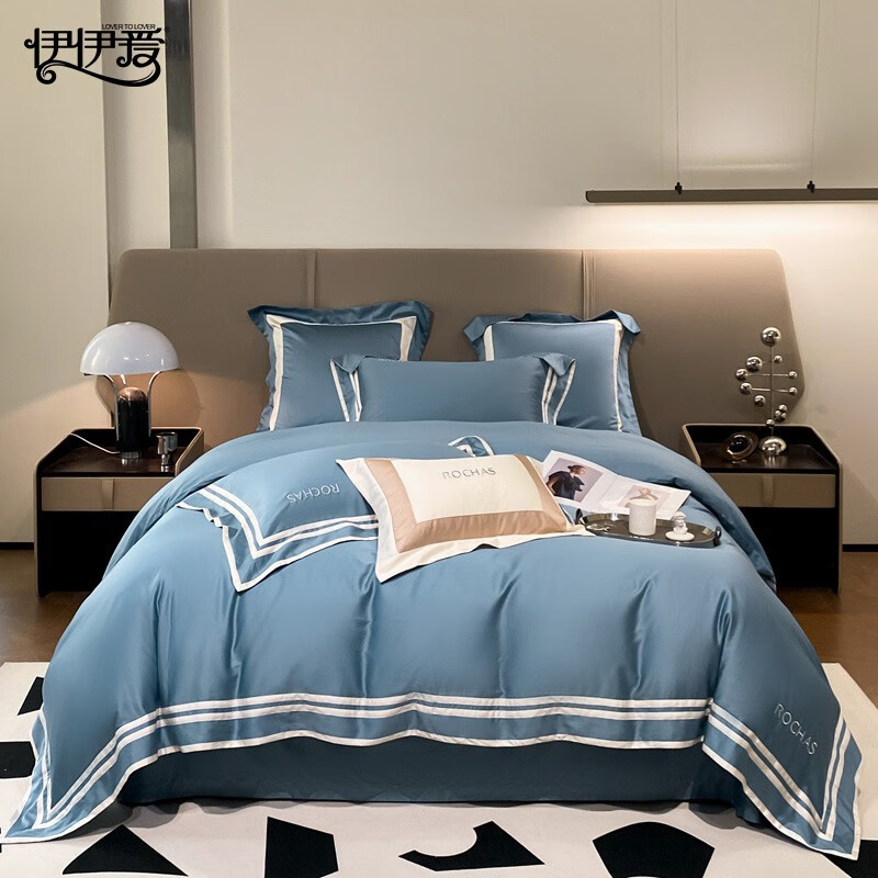伊伊爱 100支全棉宽边刺绣床上四件套200*230cm TJ0HJC2301991