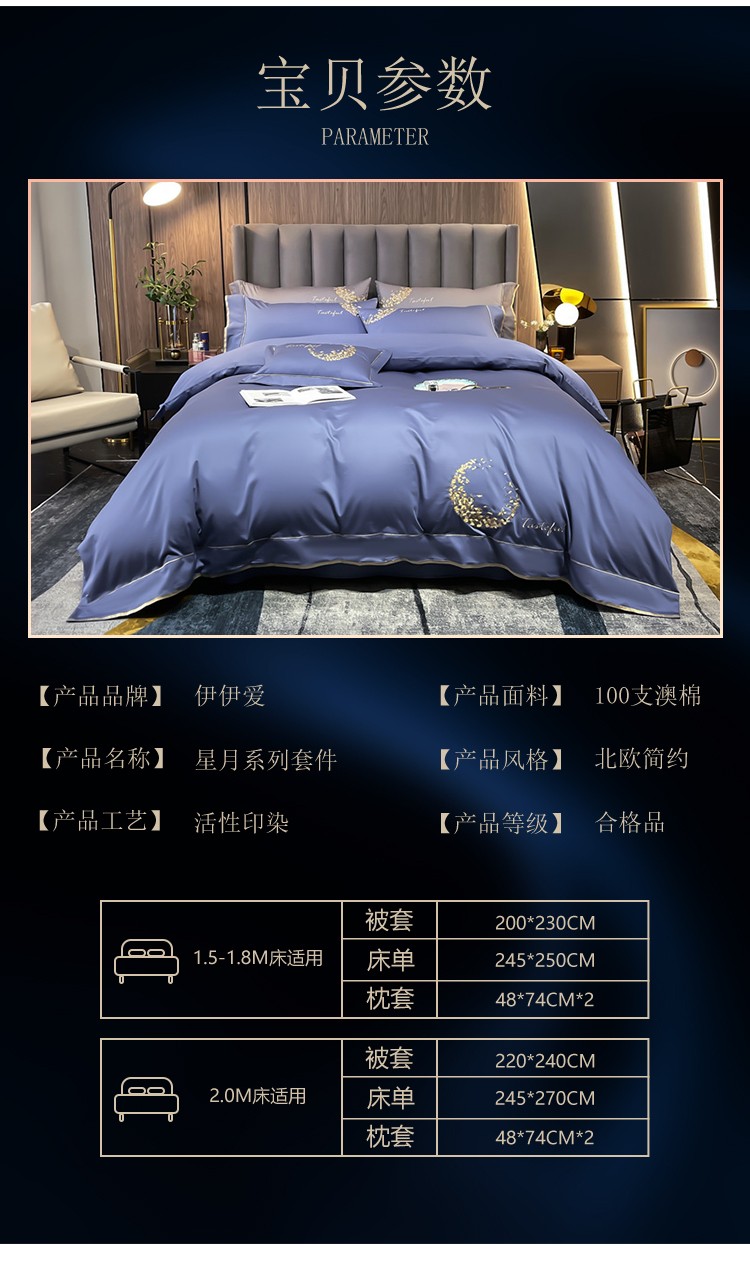 商品名称:伊伊爱 100S澳棉星月系列四件套220*240cm TJ0KL02101112
