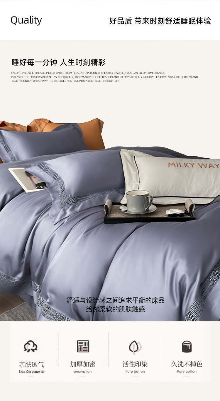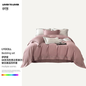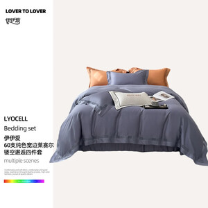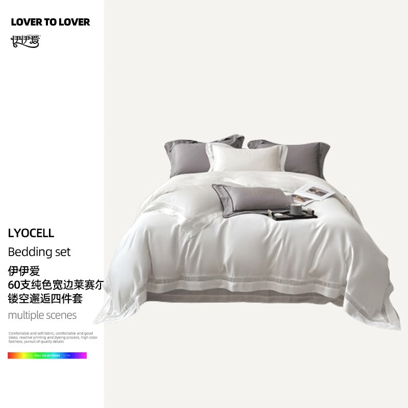 伊伊爱 60S纯色宽边莱赛尔镂空邂逅四件套200*230cm TJ0YRJ2301927