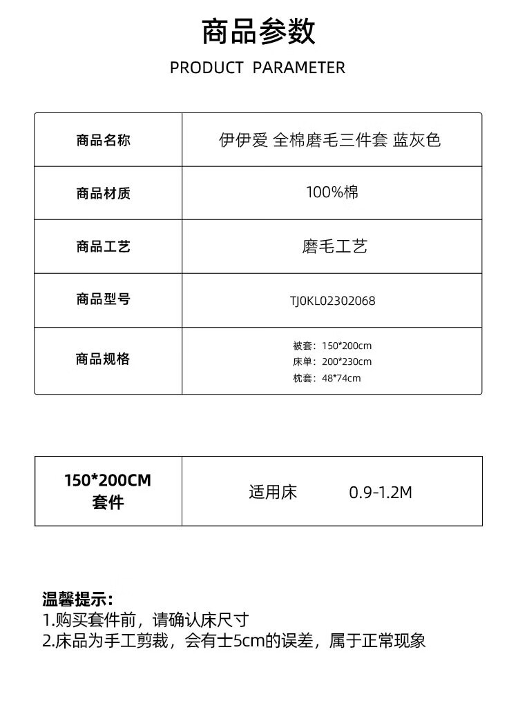 商品名称:伊伊爱 全棉磨毛三件套150*200cmTJ0KL02302068