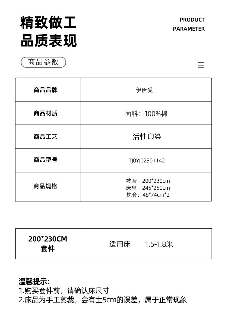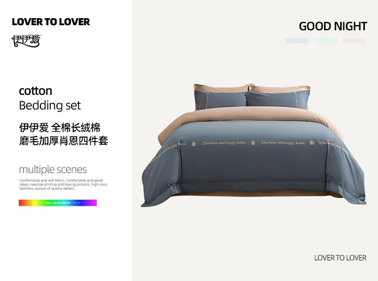 商品名称:伊伊爱 全棉长绒棉磨毛加厚肖恩四件套200*230cm TJ0YJ02301142