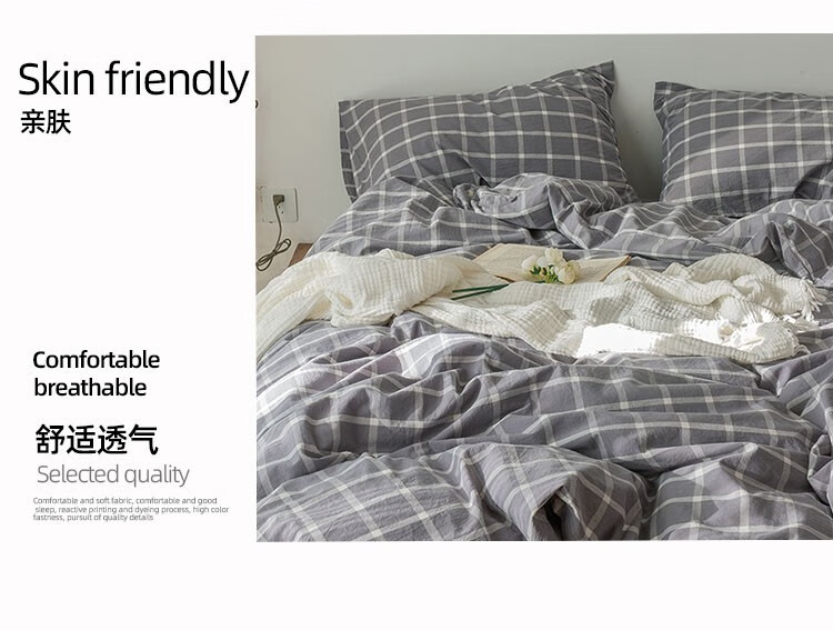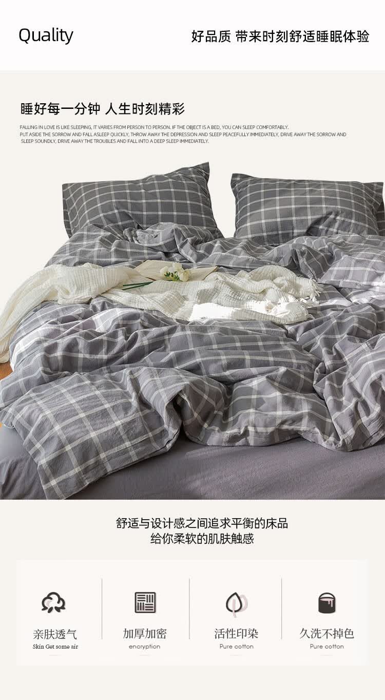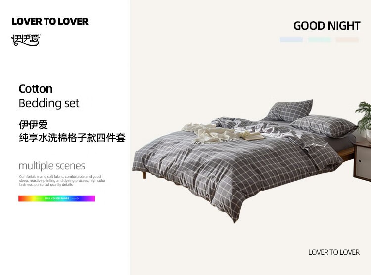 伊伊爱 纯爱水洗棉格子款四件套200*230cm TJ0SXM2301950