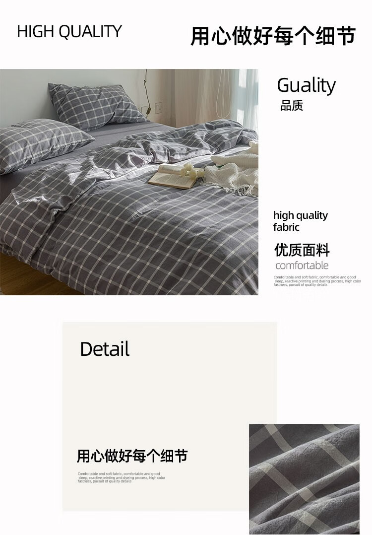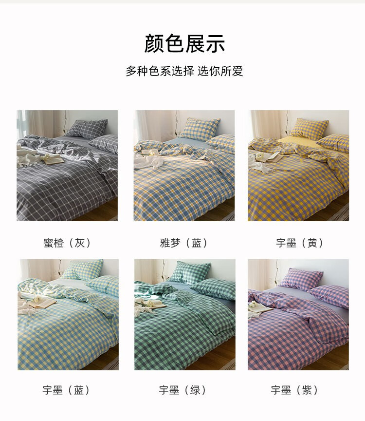 商品名称:伊伊爱 纯爱水洗棉格子款四件套200*230cm TJ0SXM2301950