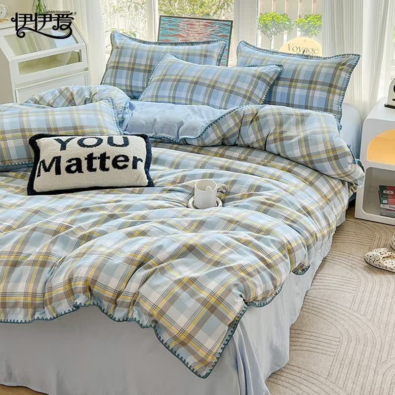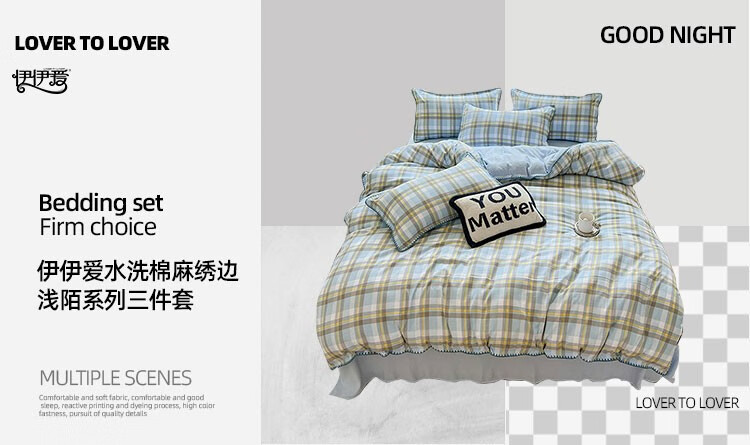 伊伊爱 水洗棉麻绣边浅陌系列三件套150*200cm TJ0ZF02302055