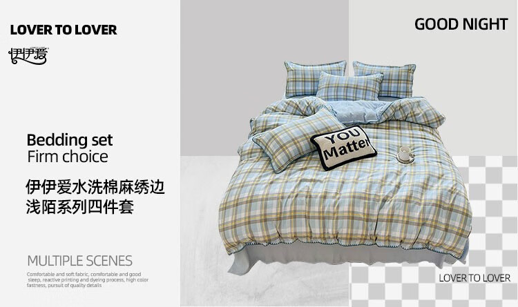 伊伊爱 水洗棉麻绣边浅陌系列套件四件套200*230cm TJ0ZF02302056