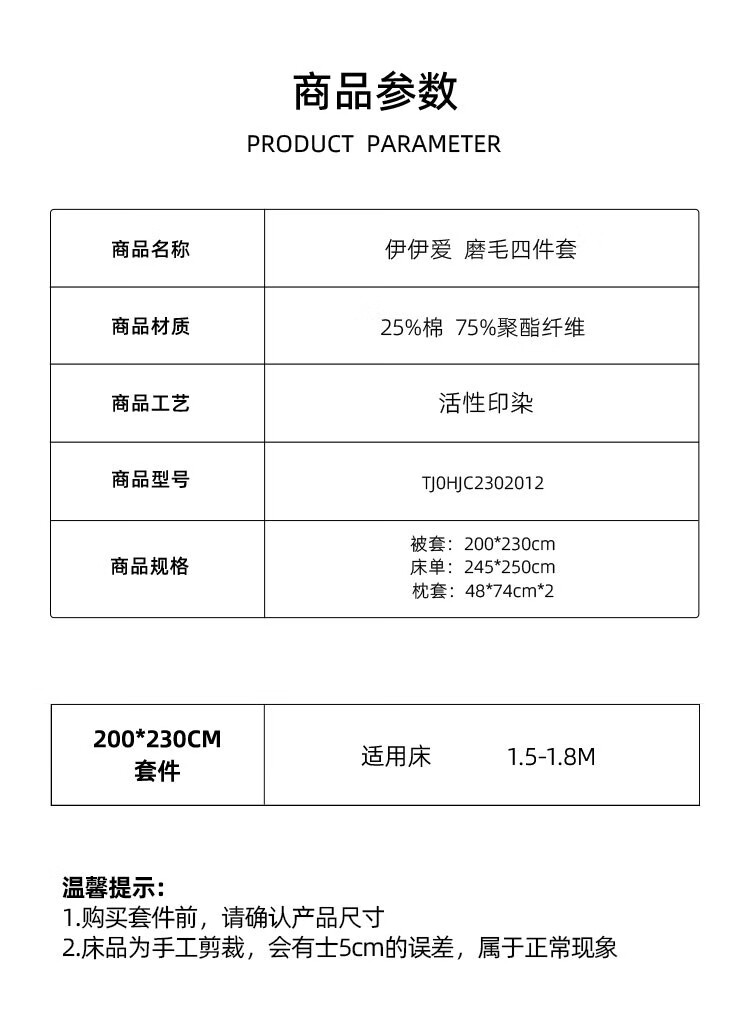 伊伊爱 艾阳绒特色双拼四件套200*230cm TJ0KY02302096