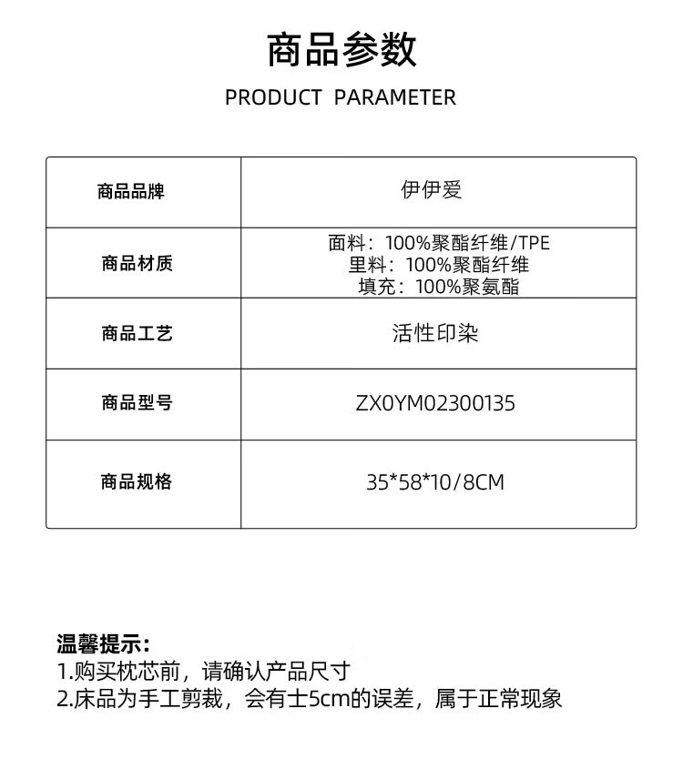 商品名称:伊伊爱 TPE椭圆微动释压枕35*58*8cm ZX0YM02300135