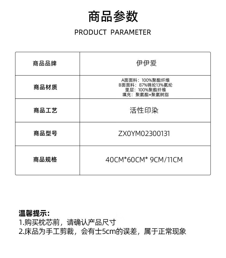 商品名称:伊伊爱 凝胶四季凉感两用枕40*60*9/11cm ZX0YM02300131