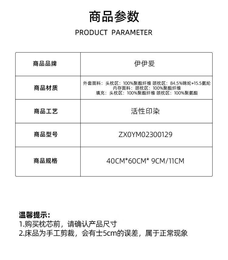 填充材质 :头枕区:100%聚酯纤维 颈枕区:100%聚氨酯