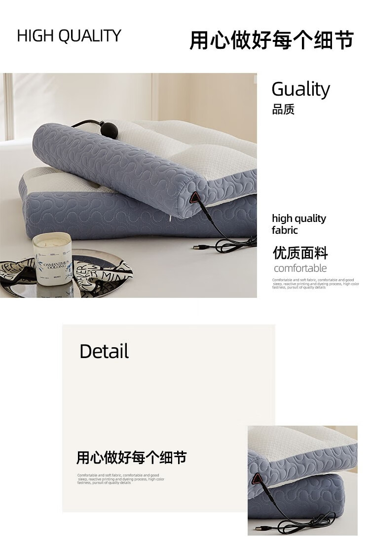 填充材质 :头枕区:100%聚酯纤维 颈枕区:100%聚氨酯