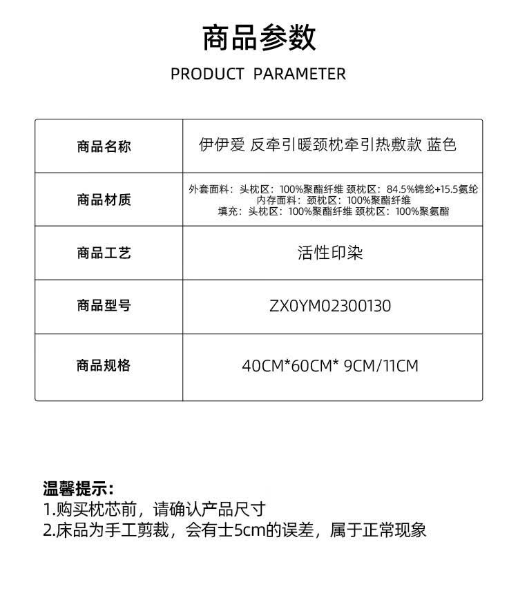 商品名称:伊伊爱 反牵引暖颈枕牵引热敷款40*60*9/11cm ZX0YM02300130