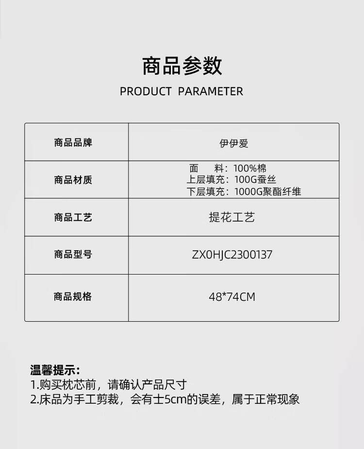 商品名称:伊伊爱 天然蚕丝美颜枕48*74cm ZX0HJC2300137