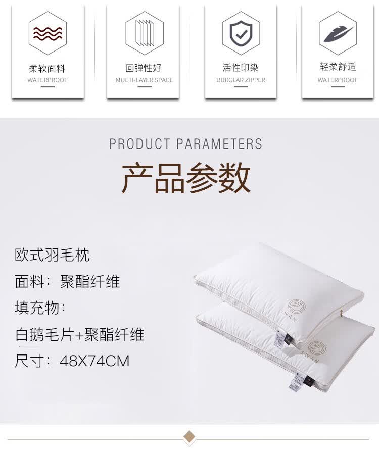商品名称:伊伊爱 白色欧式羽毛枕头枕芯白色48*74cm ZX-9YSR-005