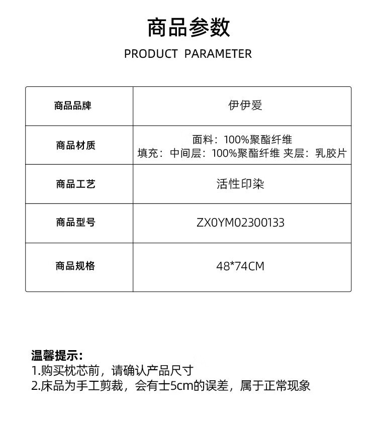 商品名称:伊伊爱 悬浮科技纤维枕48*74cm ZX0YM02300133