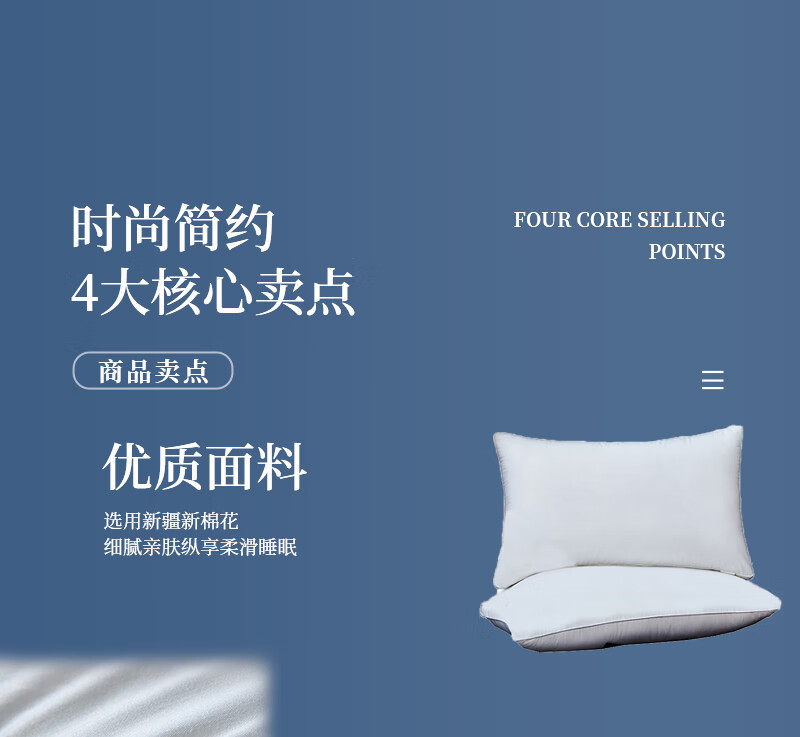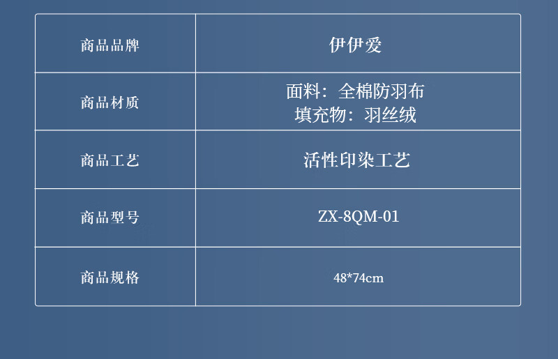 商品名称:伊伊爱 防羽布全棉豪华版枕芯48*74cm ZX-8QM-01