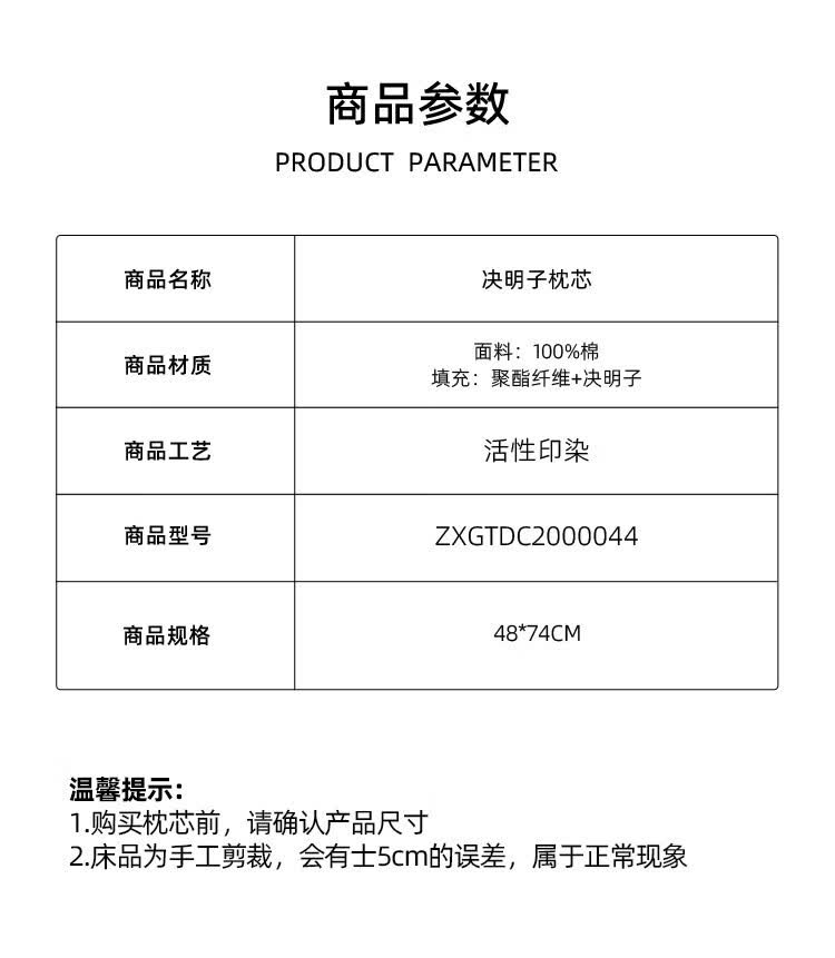 商品名称:婵思 决明子枕芯48*74cm ZXGTDC2000044