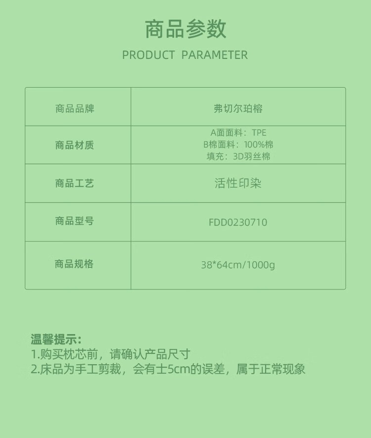 弗切尔珀榕 TPE全棉3D果冻枕38*64cm/1000g FDD0230710