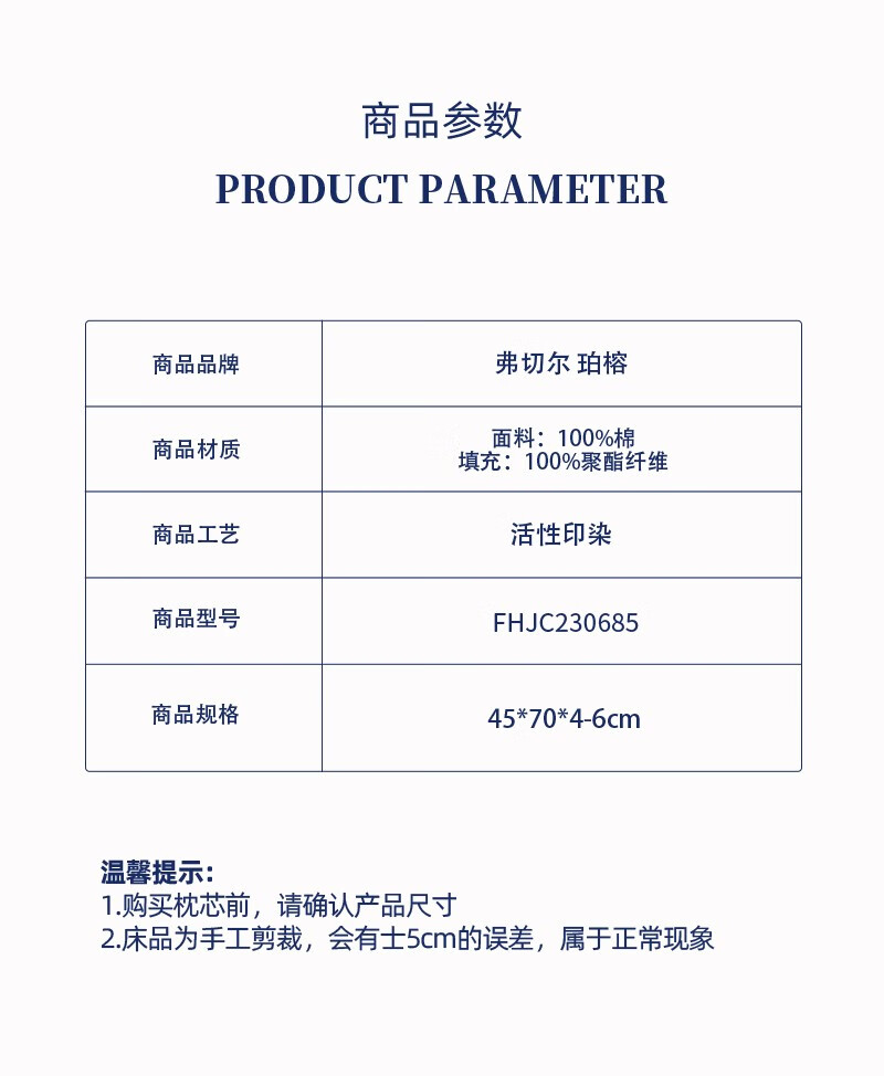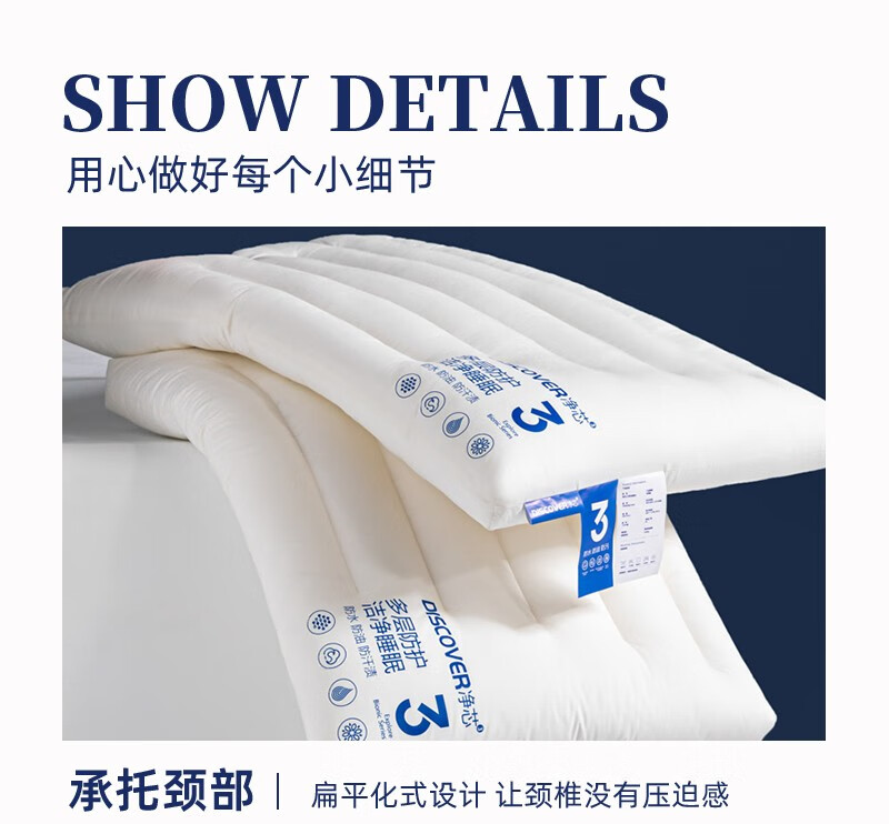 商品名称:弗切尔珀榕 净芯护颈低枕45*70*4~6cm FHJC230685