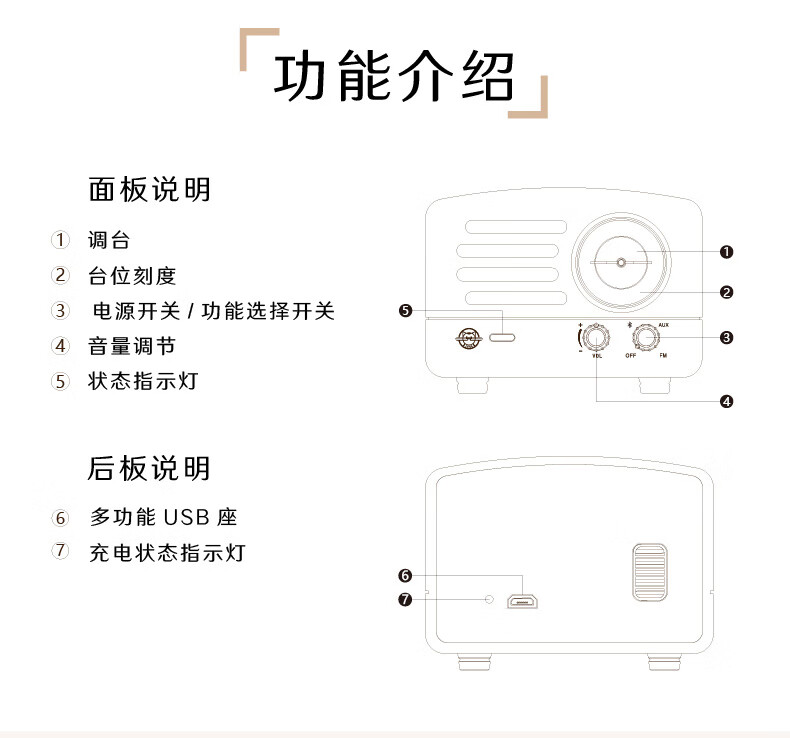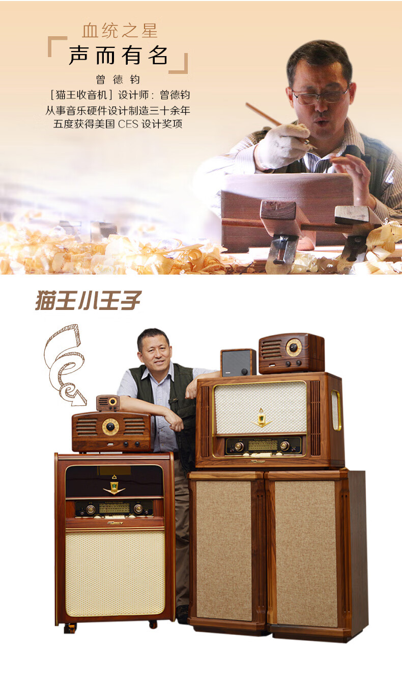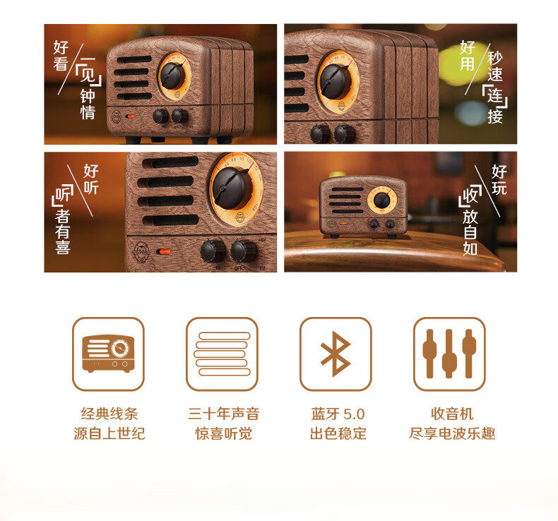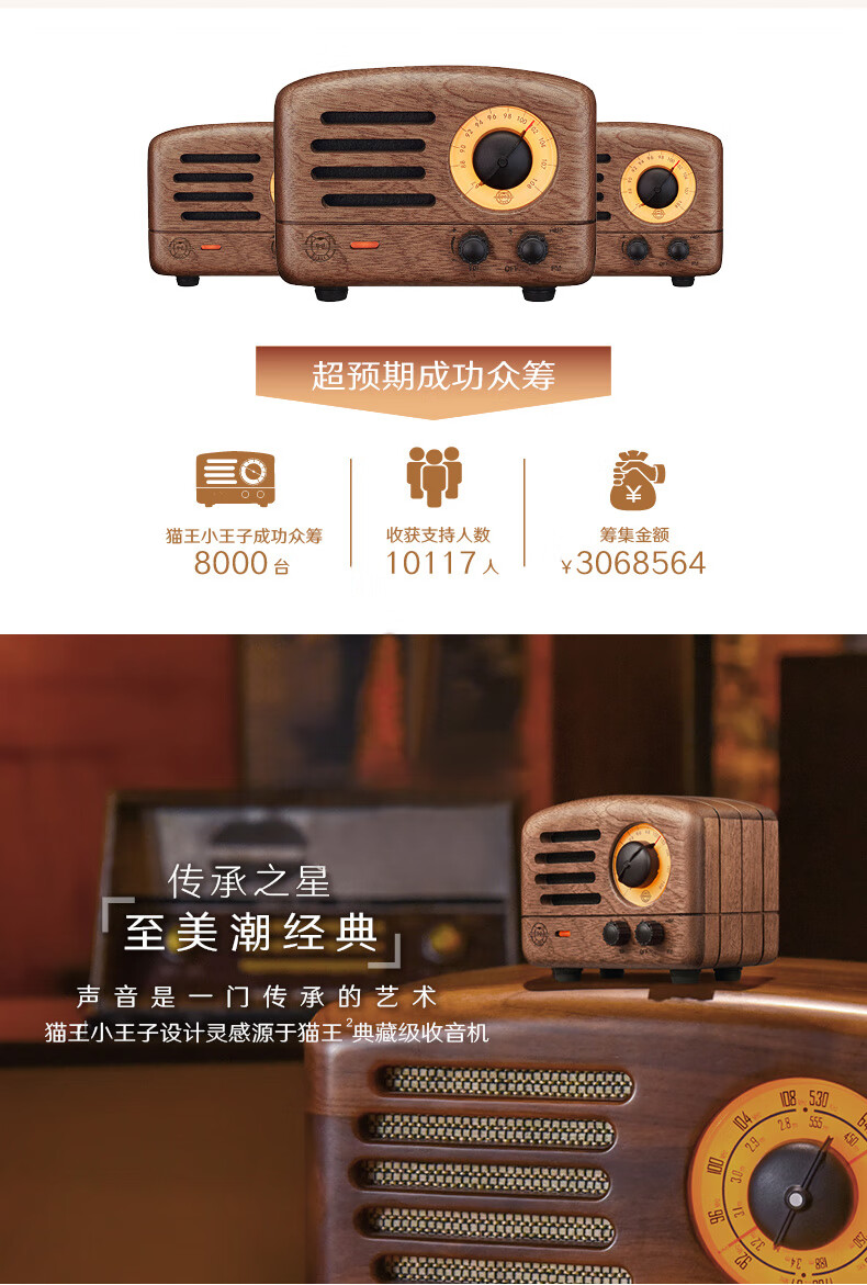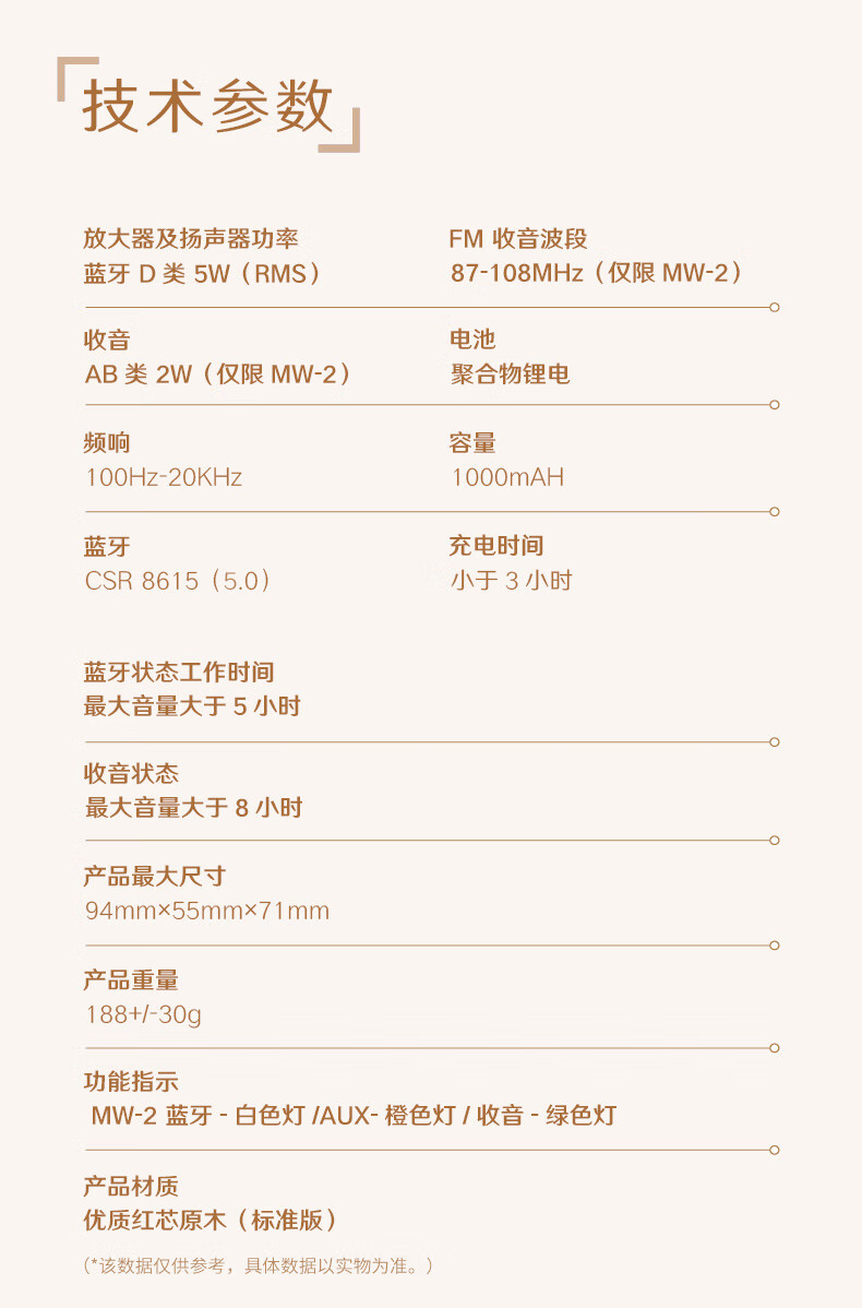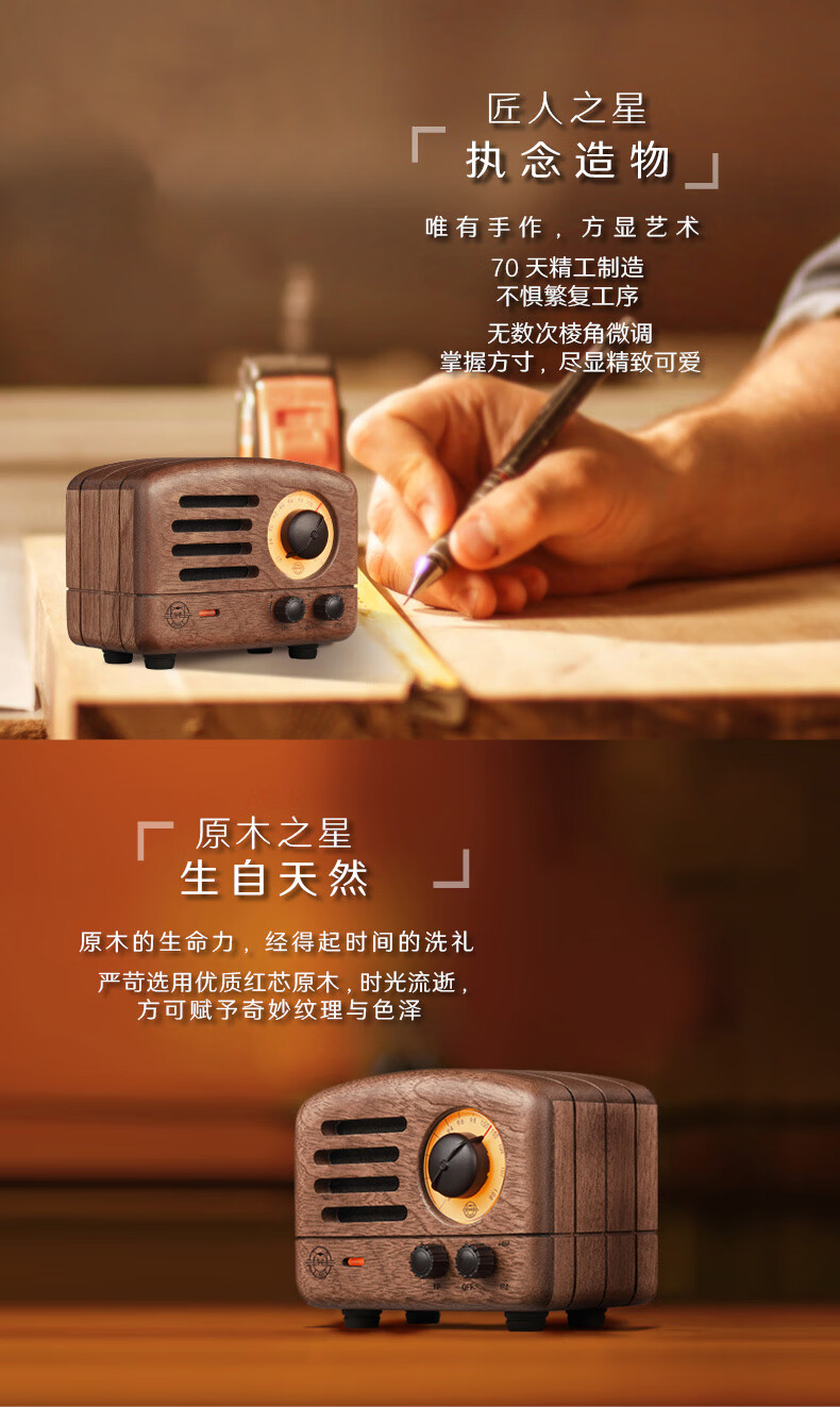 商品名称:猫王音响 小王子音箱原木FM/蓝牙便携式红芯木精装版礼盒装 MW-2