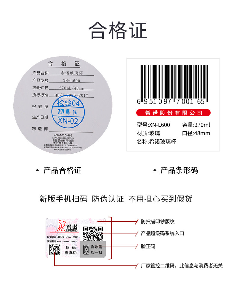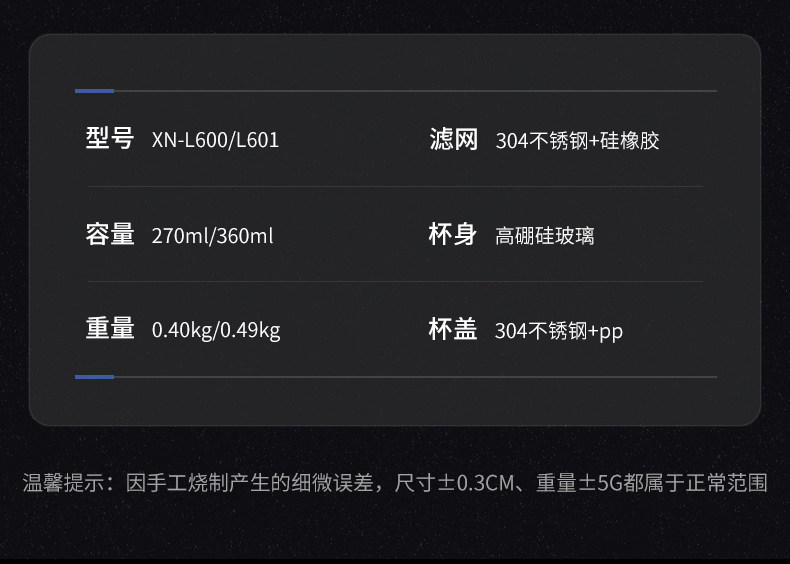 商品名称:希诺 双层玻璃杯270ml XN-L600