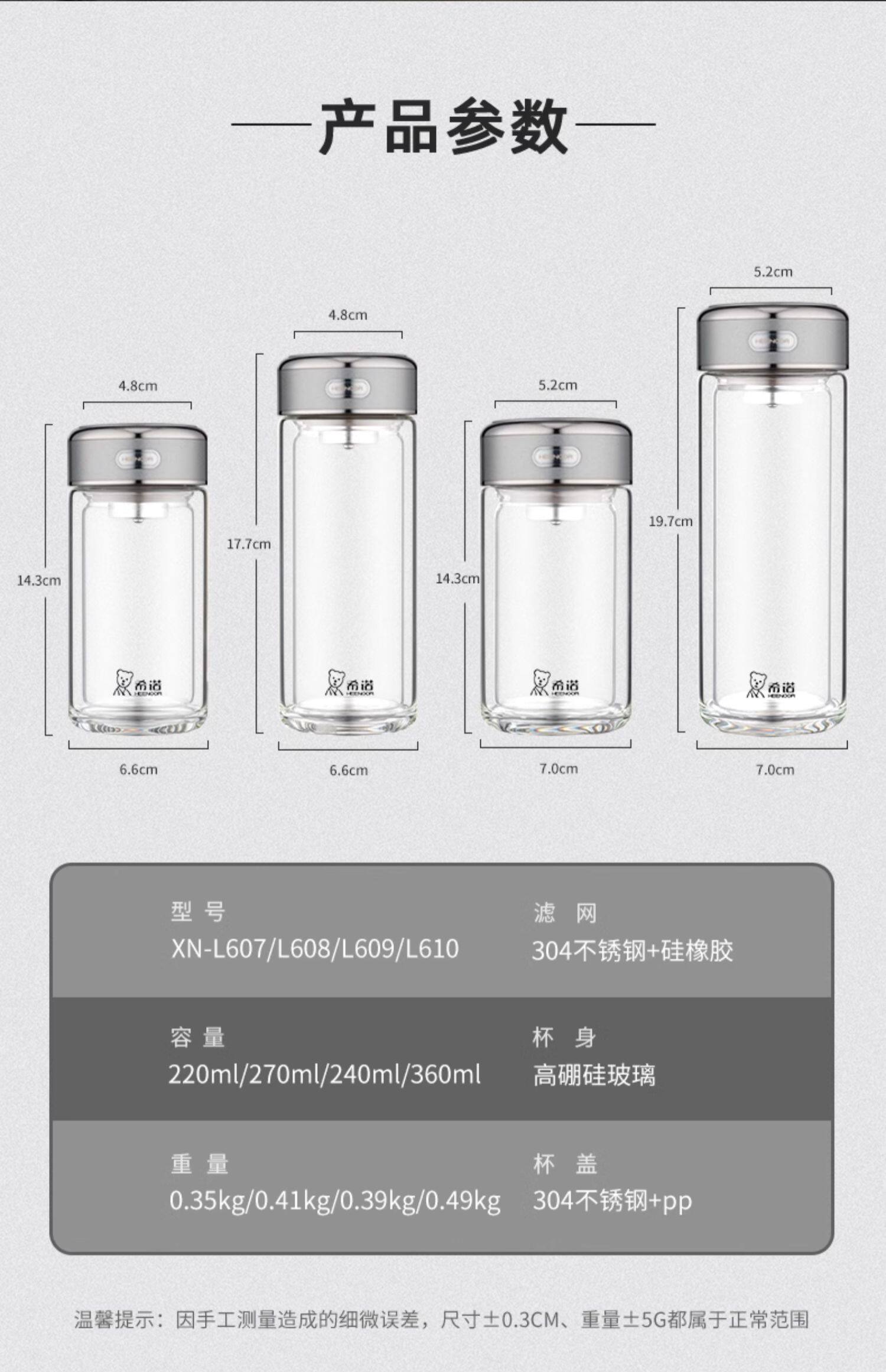 商品名称:希诺 双层玻璃杯360ml XN-L610