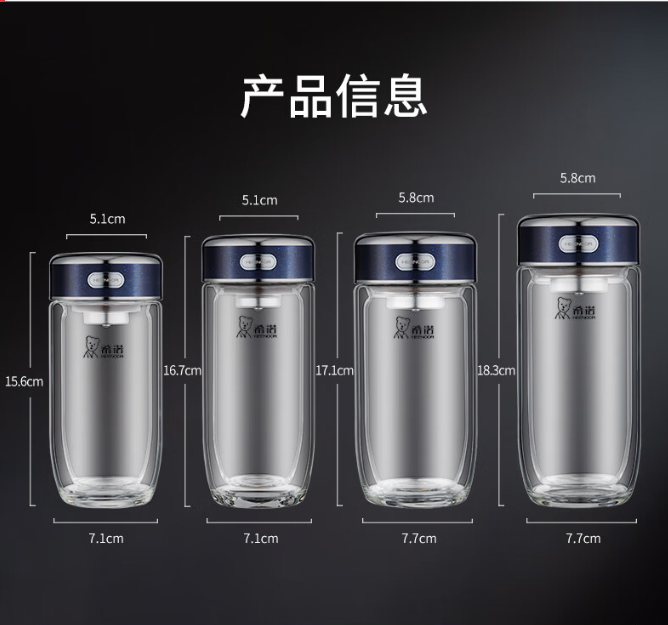 商品名称:希诺 双层玻璃杯370ml XN-L605