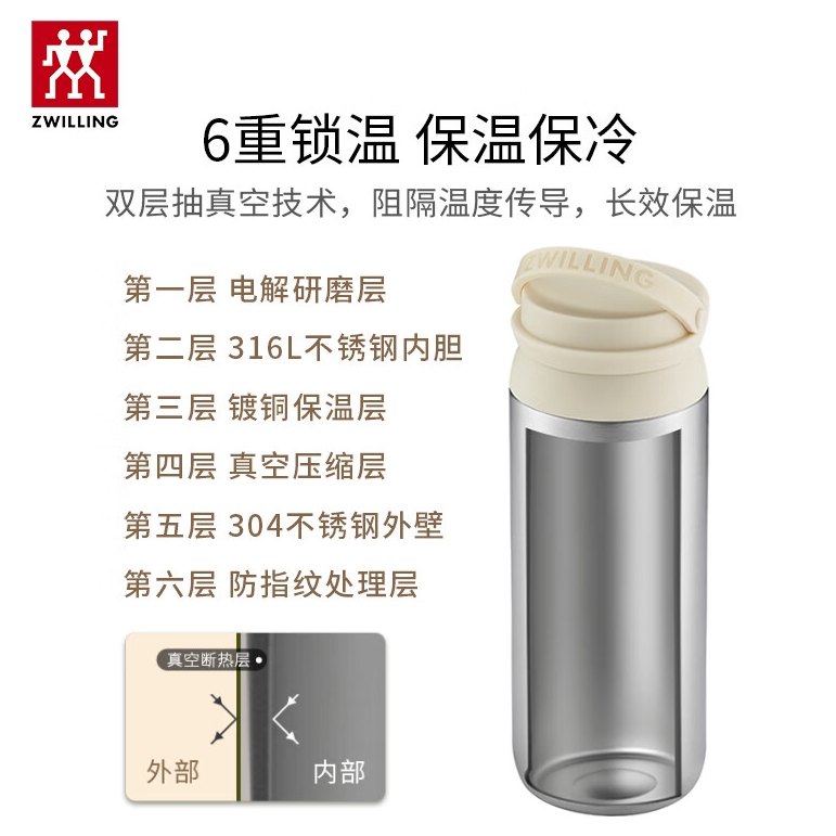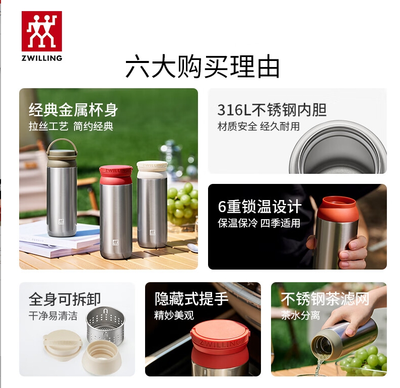 商品名称:双立人(ZWILLING)提手保温茶滤杯316L不锈钢内胆 450ml/ 1029000(红色) 1029001(白色) 1029002(绿色)
