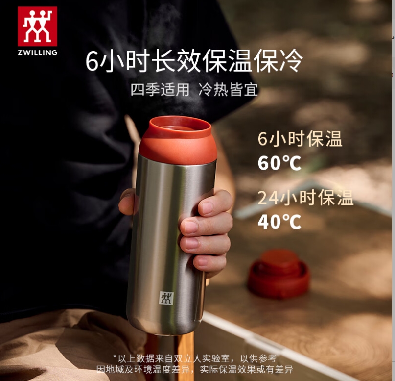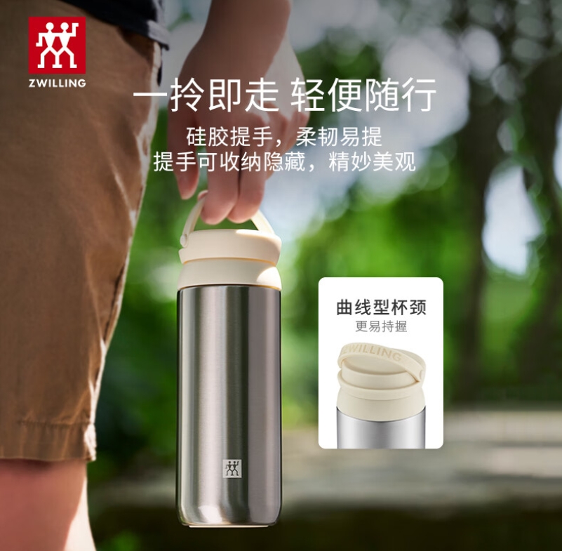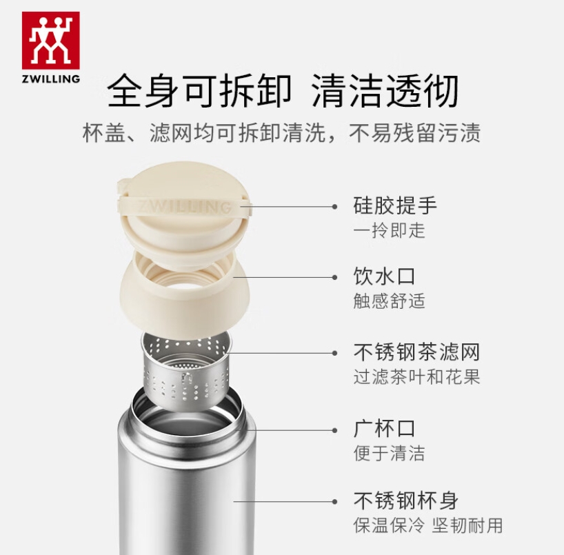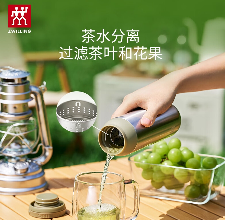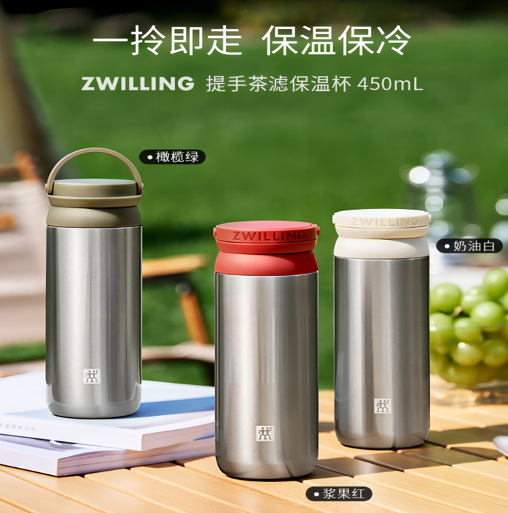 双立人(ZWILLING)提手保温茶滤杯316L不锈钢内胆 450ml/ 1029000(红色) 1029001(白色) 1029002(绿色)