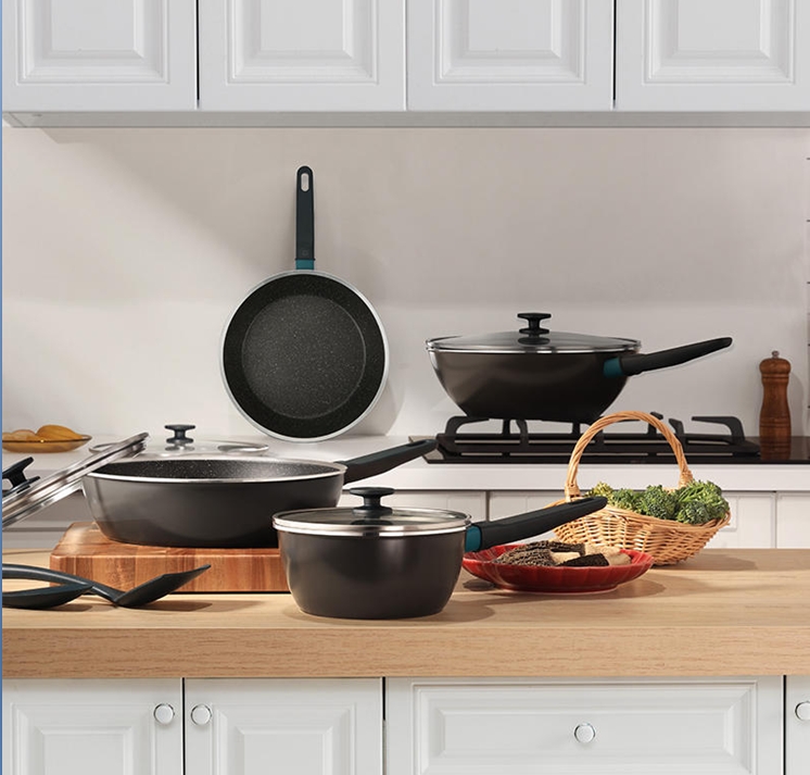 特殊工艺 ::1.不粘炒锅30cm;2.不粘奶锅18cm,3.不粘煎锅24cm;4.小号硅胶锅铲